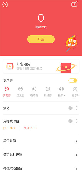 人性化的免打扰设置,定时定点开启的抢红包提醒功能。