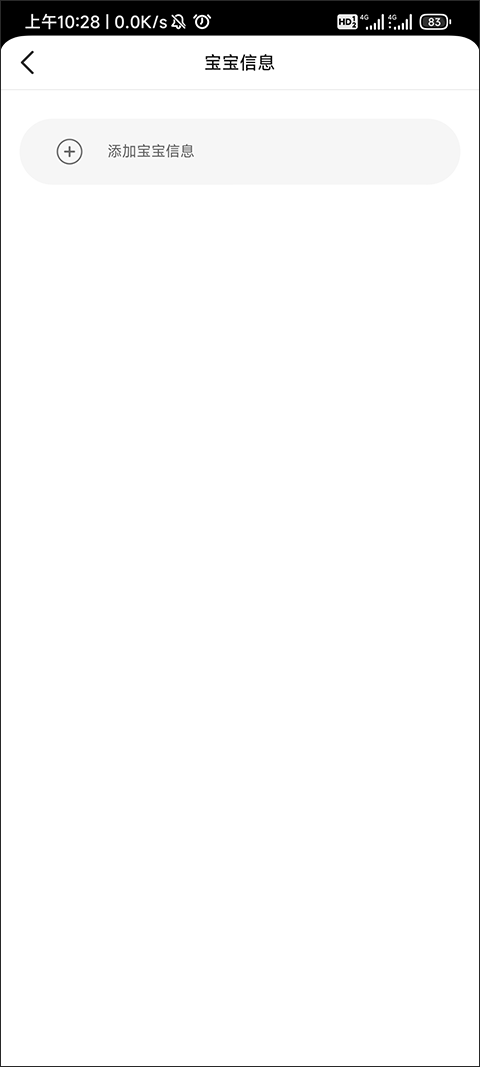 进入宝宝信息界面后可以看见现在小编的账号上还没有绑定宝宝,这个时候我们点击添加宝宝信息,进入填写界面。