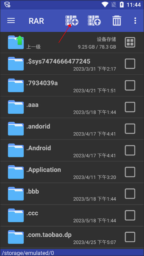 1、下载安装好winrar手机版,进入软件选择好你需要压缩的文件,点击上方压缩件。