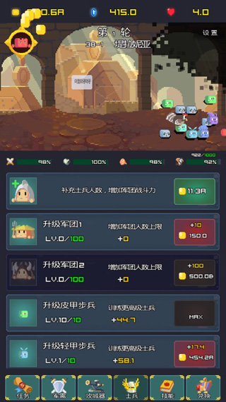 “糖豆战争”是一款新派的像素风放置挂机游戏,背景设定在糖果世界被黑势力入侵后,玩家扮演糖果英雄带领剩余的糖豆族人展开反击。游戏画风简洁可爱,玩法丰富多样,包括士兵升级、技能强化和战略补给等系统。过关时获得的金币可以用来提升军需和装备,而剧情中还有幽默搞怪的情节和有趣的漫画内容。作为新手,我觉得这款游戏非常适合喜欢轻松休闲又想体验策略养成的朋友,尤其是那些对像素风和糖豆主题感兴趣的玩家一定不会错过。游戏的操作简单直观,但策略性十足,需要合理分配资源才能顺利过关。总的来说,“糖豆战争”在玩法和画面上都下了不少功夫,值得一试!