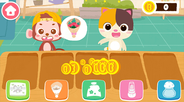 5、小动物们接到花之后会给小朋友们一些货币哦!