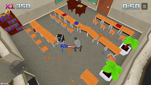 对学校不顺眼?不爱上课?写作文作业?来这款游戏帮你消除你的问题,摧毁学校的所有直到校长办公室吧!喔,对了,请不要模仿,因为这个作风是逆天的行为哦。游戏特色