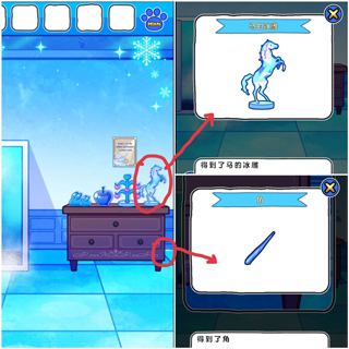 柜子摆放物品→马的雕像;柜子右下角→冰锥