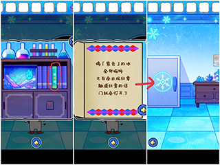 三层 鱼缸右侧绿色书→解开冰柜封印提示→紫=红+蓝