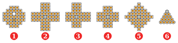 5、上图中4号便是标准版——英式孔明棋,1号是最常见的棋盘变种——欧式孔明棋。6号这类型……至少有盒跳棋就能玩一把。