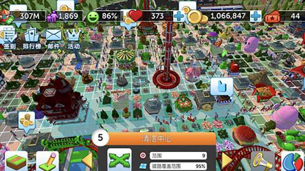 乐趣受游乐设施影响,美食受餐厅数量影响,卫生则受垃圾数量影响。想要提升平均满意度,便必须提升这三者的满意度。所以,在游戏中我们要尽可能多的建设新的游乐和美食建筑,同时升级已有建筑。另外,平均满意度还会受到道路的铺设影响,要尽可能的让服务设施覆盖所有道路,不然多余的道路会产生额外的垃圾,影响整体满意度。