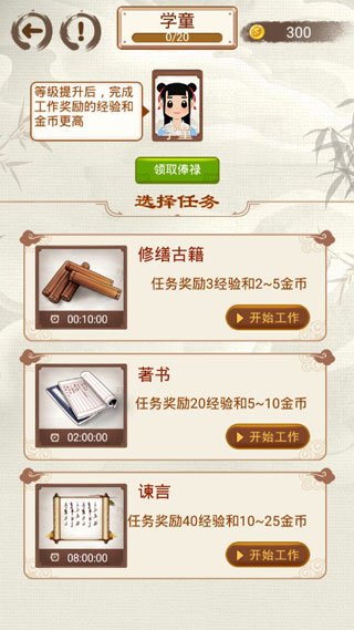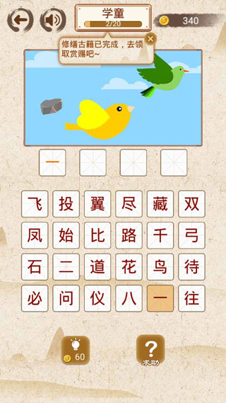 同时除了简单的看图猜成语和按照意思猜成语以外,游戏中还加入了任务功能,选择任务挂机也能让你获得金币哦。