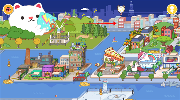 1、打开米加小镇披萨店最新版游戏后,向右滑动到底即可找到披萨店。