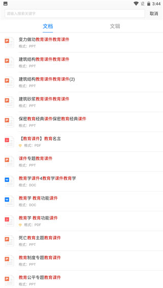 4、出现文档搜索结果后点击选择你想要下载的文档;