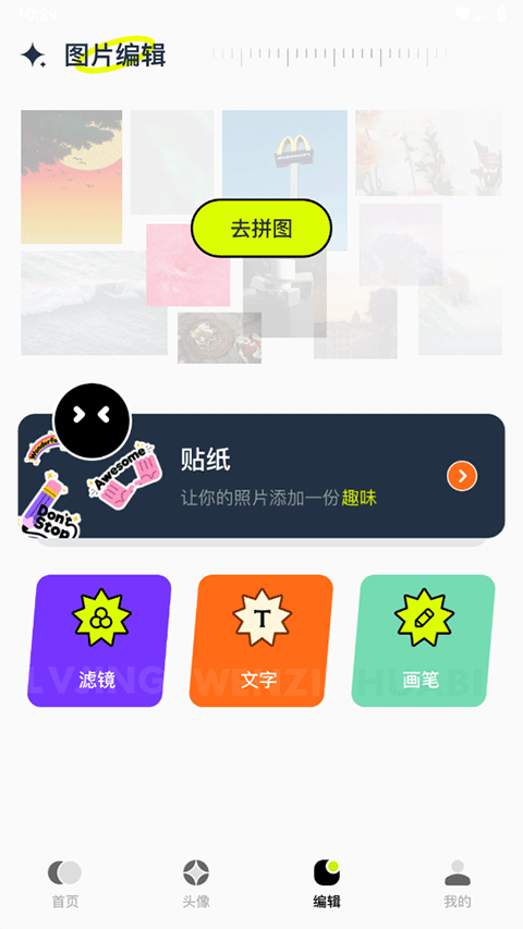 5、也支持图片编辑,你可以将多张好看的图片编辑在一起,也可以为图片添加滤镜、文字、画笔等等