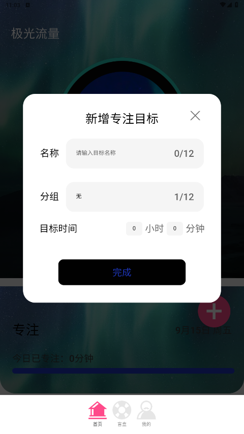 3、点击右下角加号还能新增目标,输入名称、分组以及使用时间。