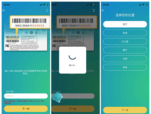 6、输入设备MAC地址的后六位及选择路由在家中的位置。