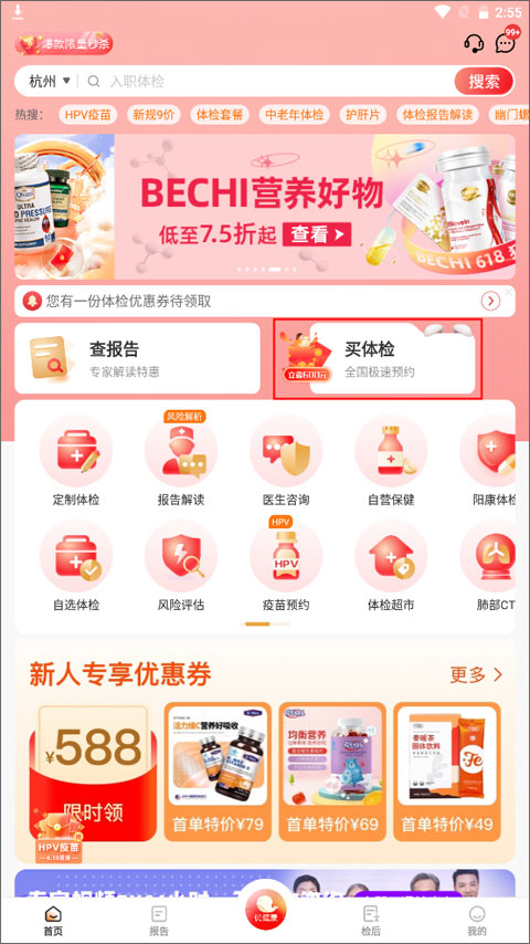 3、 体检预约:任选时间门店,折扣加项包提前选。