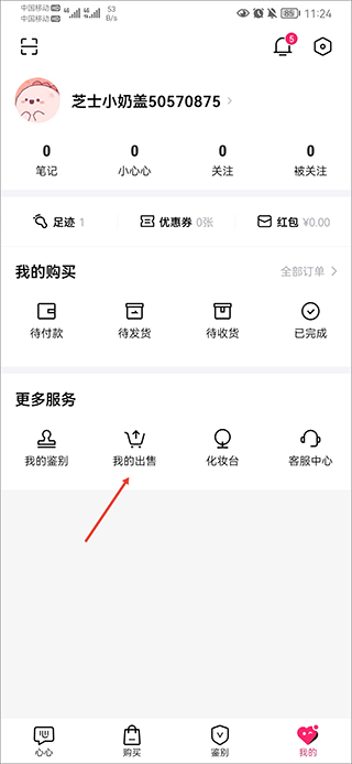 1、打开心心鉴定app,在我的界面中点击我的出售