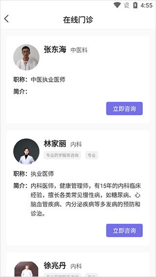 3、在首页中,点击在线门诊时,用户可以咨询各科医生;