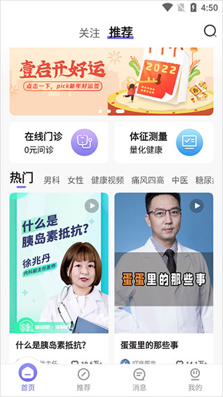 1、进入软件后,在首页中,用户可以观看有关于男科、女性、健康视频、中医等有关视频;