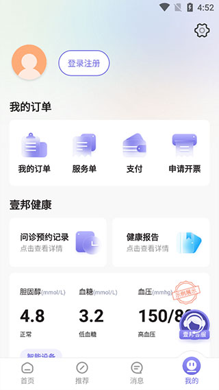 4、在我的中,用户可以查看购买订单、健康报告、问诊预约记录等功能。
