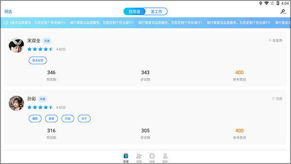 3、你是导游的话你可以进行发布自己的信息让游客跟你的团进行旅游。
