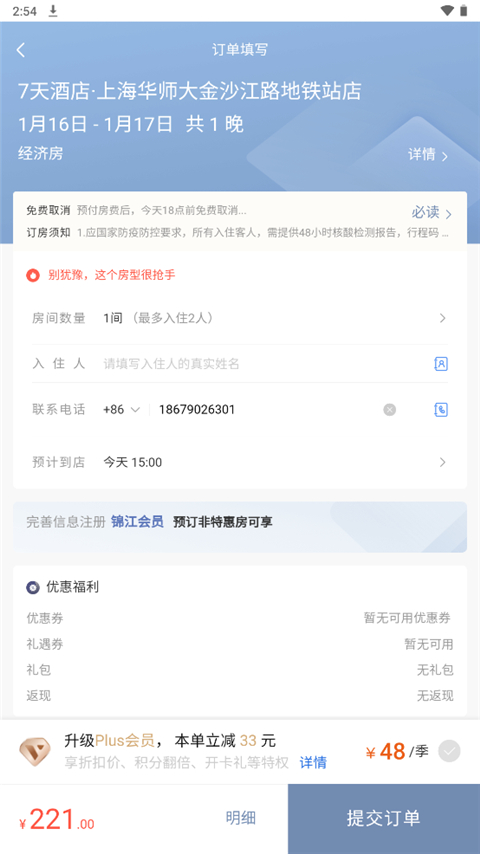 7天连锁酒店订房须知