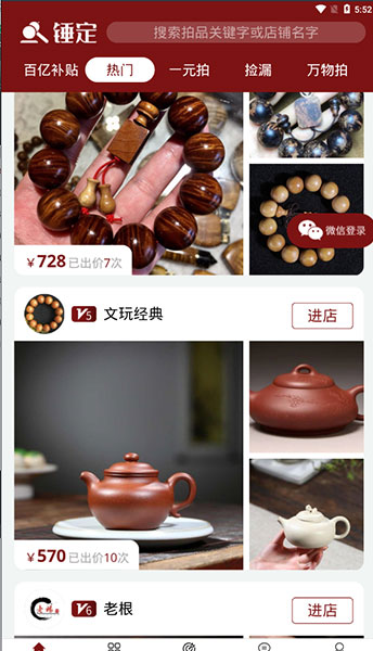 3、打开“热门”可以看到各种各样的文玩博主发售的物品;