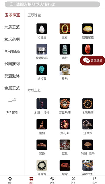 2、点开“分类”里面有非常多的品类,喜欢的文玩的朋友可以好好的欣赏;
