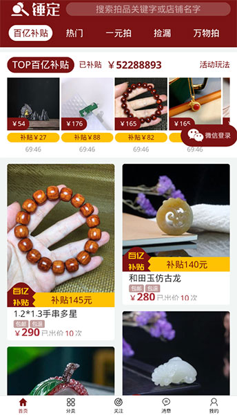 锤定app是一款由厦门淘捡漏公司开发的拍卖平台,类似于“闲鱼”,但更专注于文玩领域。这里汇聚了各种文玩爱好者,品类丰富,从生活小物到文物古玩应有尽有。平台分为三个模块:一元拍(价高者得)、捡漏(性价比高的物品)和万物拍(生活常见物品均可拍卖)。软件操作简单,分类清晰,热门内容更新及时。此外,app还提供新人福利(百亿补贴、0元起拍等)、分享奖励、免费开店等功能,吸引了不少用户入驻。