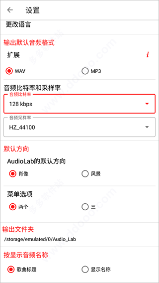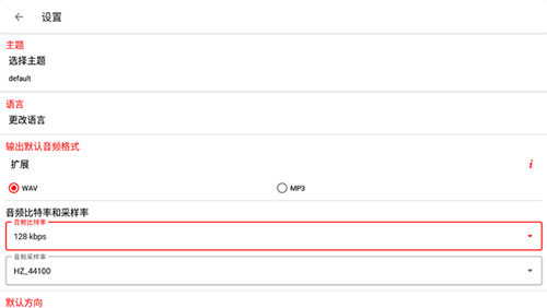 3、另外到设置中还可随意的设置输出音频格式、音频比特率、采样率、输出文件夹等参数