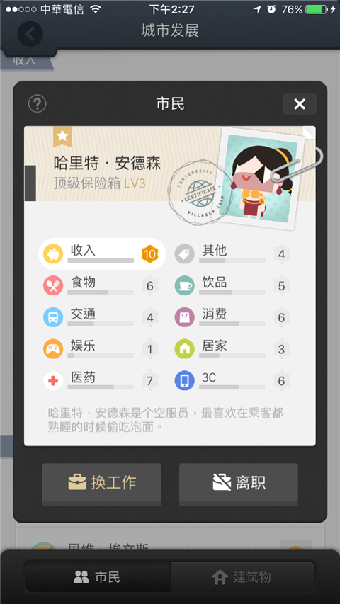 除了建筑物以外,千奇百怪的小市民或游客当然也是城市的亮点了。随着城市的发展,会有越来越多的游客造访你的城市,市长可「招募/邀请」他们加入成为市民,并指派他们到城市的建筑物中工作,打卡上班后,就可以为城市生产金币了。他们的心声也都特别可爱,例如: