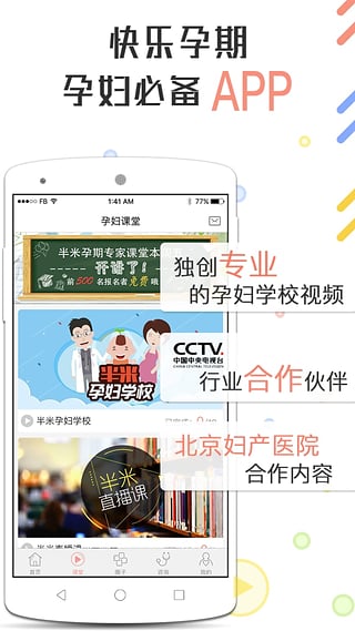 【视频课堂】丰富的在线课堂,通过专业医生的视频讲演、真实操作、模拟宝宝等方式直观地向孕妇演示讲解怀孕期间的相关事项,解决孕期妈妈的所有疑惑。【妈妈社区】妈妈们可以跨越地域和时间障碍,在这里交流怀孕心得、育儿体验,或是聊一聊日常生活中的新奇趣事,晒一晒自己和宝宝的亲密合照。