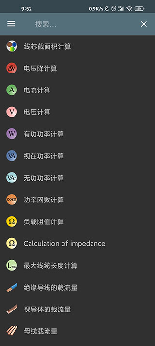 2、【强大】可以用来计算电压降、电流、电压、有功功率、电机转速、电机效率等等,覆盖四色环(码)电阻计算、五色环(码)电阻计算、电感色环(码)计算,辅助学习电学基础知识、电工工具、变配电及低压电路安装、小型同步发电机、电工作业所有需要进行计算的功能