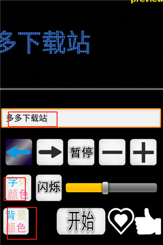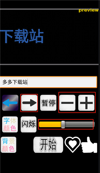 2、左右健是字体滚动方向,加减号是字体大小,下方黄色进度条是字体滚动速度,设置好后点击开始;