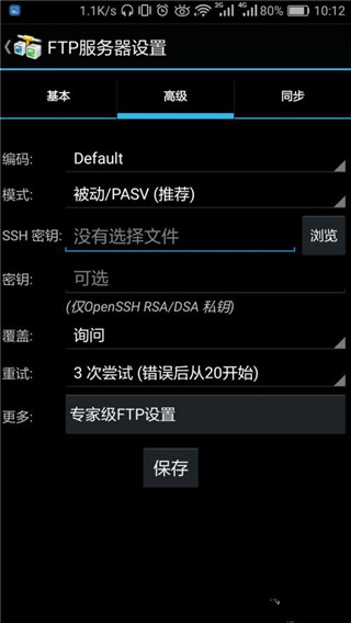 1、它可以管理多个FTP服务器,它同时配备了一个设备文件浏览器各一个FTP文件浏览器2、android设备上的FTP/SFTP/FTPS客户端。提供下载,上传,同步和共享功能,并支持简历。