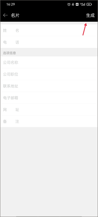 2、在名片编辑界面里输入相关的信息,然后点击右上角的生成按钮。