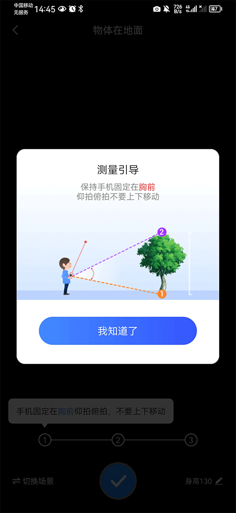 4、测量高度:通过手机摄像头测量建筑物、树木等物体的高度。