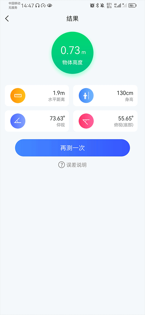 5、最后就会为你测量出身高结果啦,如果觉得不准可以点击再次测量