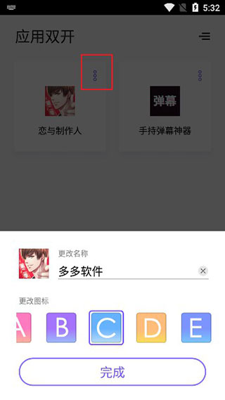 5、点击应用变身可更改软件的名称并且自定义图标;