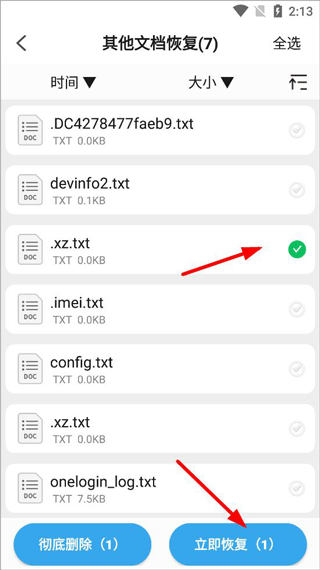 5、打开文档恢复,软件自动扫描出误删文档,选择需要恢复大的文件恢复即可,也可彻底删除文档。