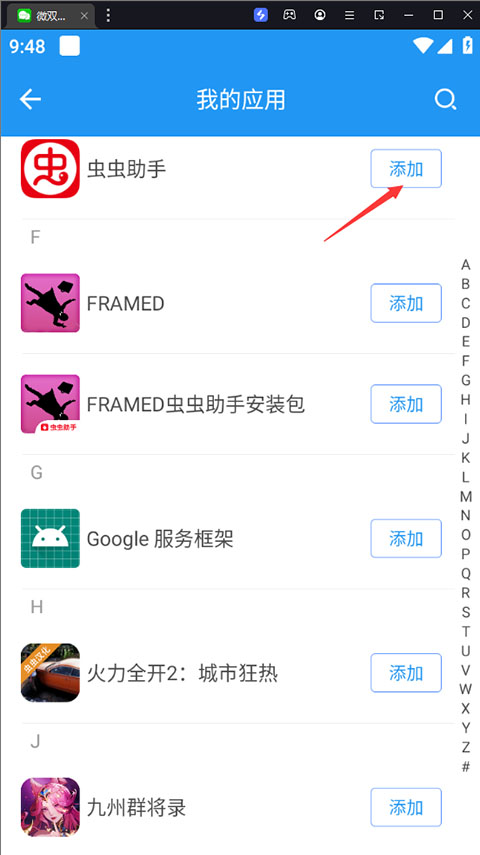 2、找到你需要双开的软件,点击添加