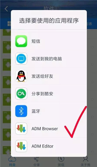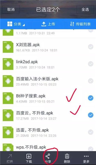 4、打开百度网盘,把自己想下载的文件,使用分享功能。