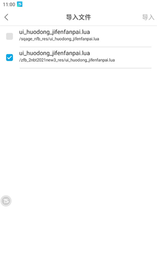 勾选要导入的文件,点击右上角的「导入」,即可把脚本文件导入触动精灵脚本目录。