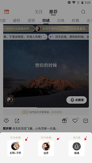 2、可以选择【与TA合诵】或【独诵】,咱们选择读诵。