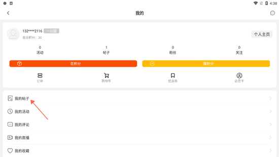 1、进入软件后,点击左上角的头像,点击“我的帖子”。