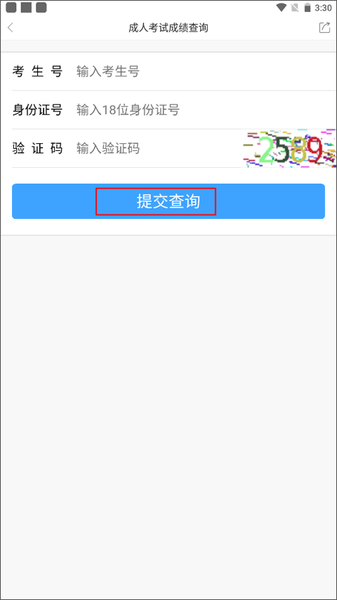 2、输入考生号、身份证号以及验证码,点击提交查询,页面就会自动跳转到考试成绩查询网站,立马就能看到自己的成人考试成绩了。