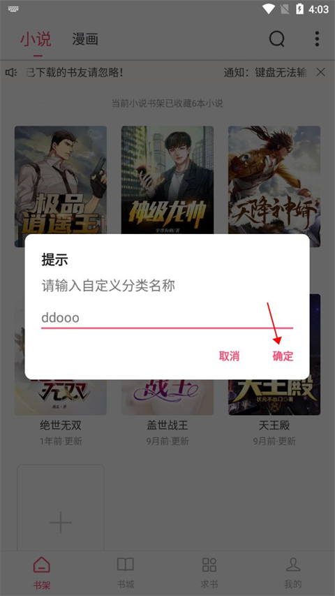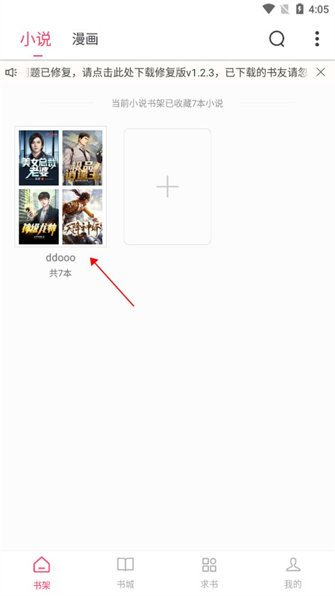 4、确定好之后就创建成功了,以后有想看的小说可以放这里面。