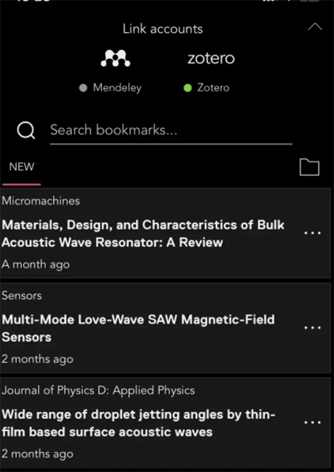 账号联用之后,只要你在APP内对某一文献进行了收藏便可直接同步到您的Mendeley或者Zotero上。
