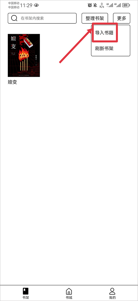 5、在书架中你可以随时查看你加入的书籍,同时也可以将手机本地的书籍导入至app中