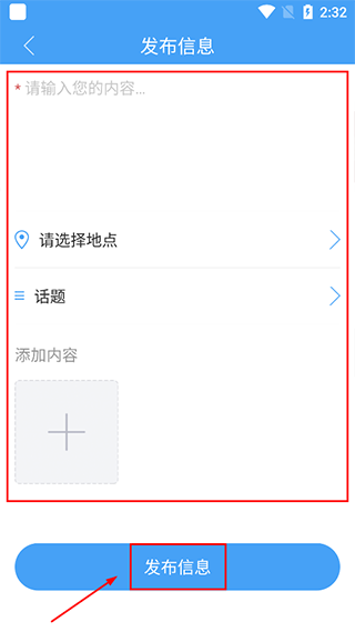 3、填写想要发布随手拍的类型及内容,点击发布即可。