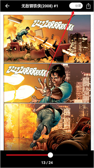 3、手机看漫画觉得屏幕太小?我们有独家的智能分屏模式,带你细致查看漫威编辑精心编排的分镜,不再需要无数次的放大缩小。