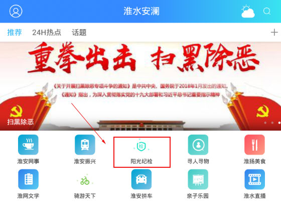 1、下载安装本站提供的淮水安澜阳光纪检网app;2、点击阳光纪检进入模块;