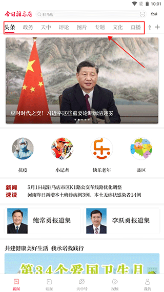4、登陆后即可开始资讯相关内容了,这边有很多版块可供用户切换